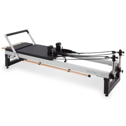 A compact, light commercial Reformer designed to blend classic Pilates geometry with modern functionality. Features include a 4-spring system (expandable to 5), patented Rapid Change spring bar, and height-adjustable silent ropes. It offers a space-saving design that can be stored vertically when used with a Jump Board.